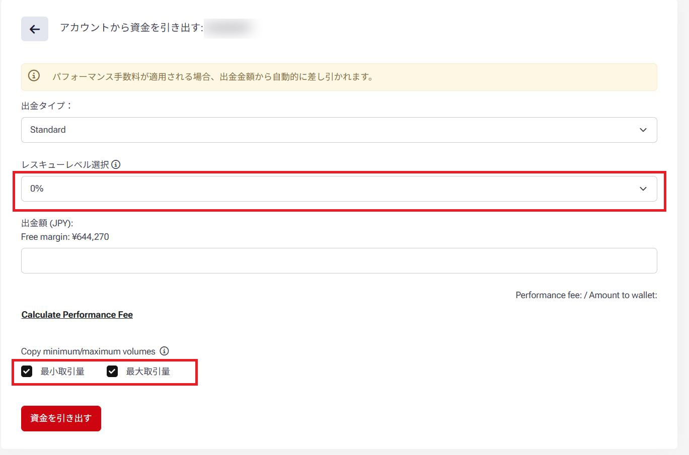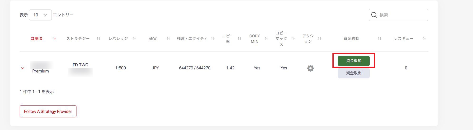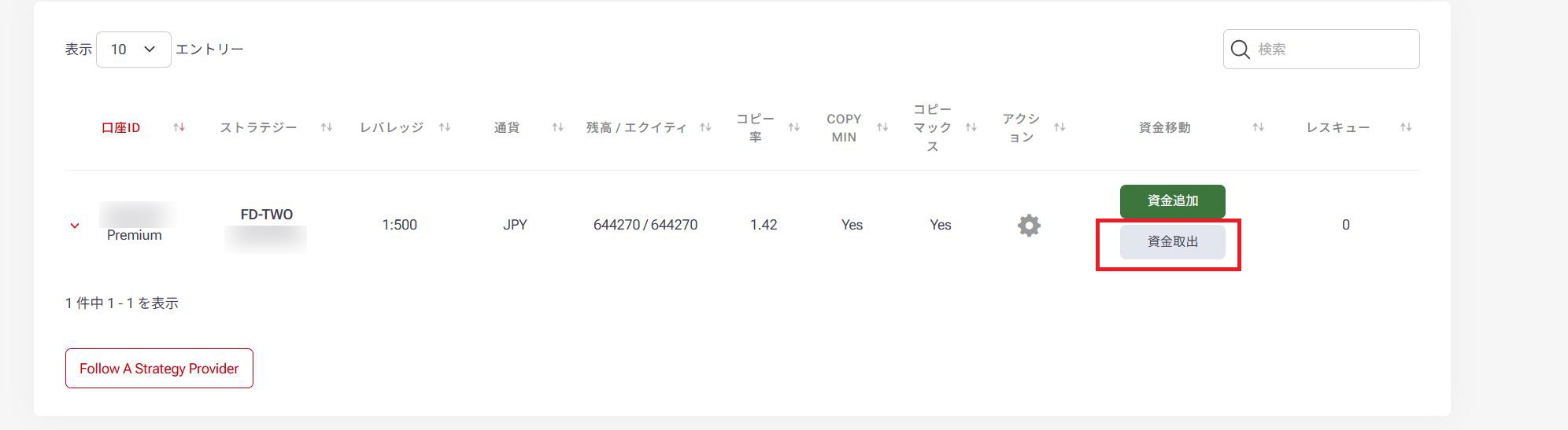 フォロワー口座が表示されますので、資金を取出したい口座の欄にあります