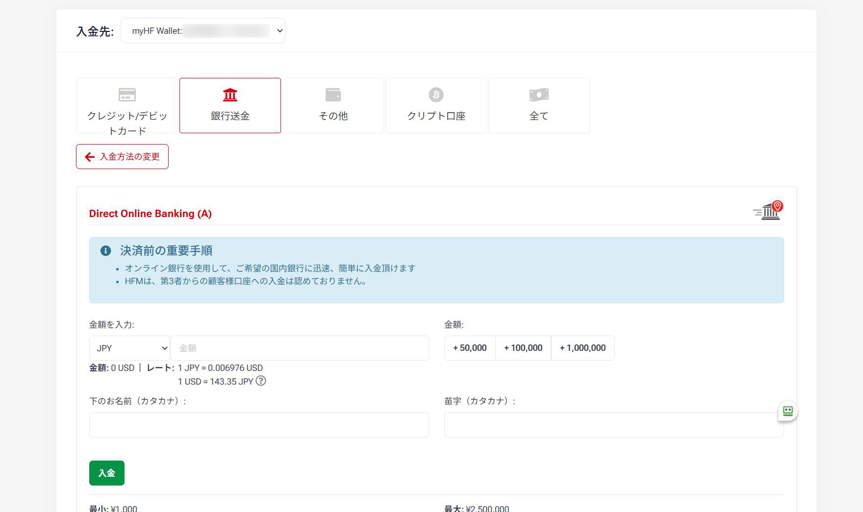 クレジットカード入金をされた方の場合は、マネーロンダリングなどの関係で