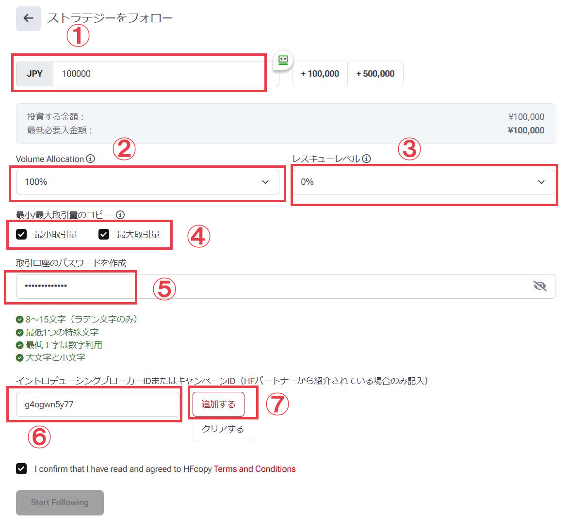 ④最小/最大取引量のコピー 【最小取引量/最大取引量ともにチェック】